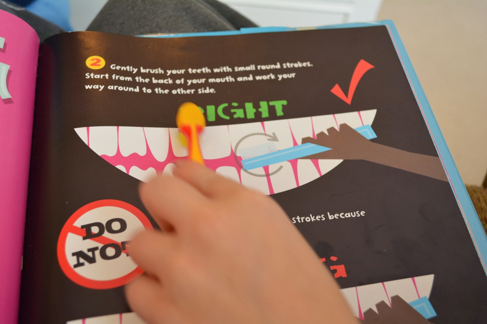 One book gave great instructions on caring for teeth so we practiced with a real toothbrush on the page. All 3 kids flossed that night without being asked at all.